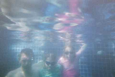 Peter, Jolijn en Meike onder water in het zwembad