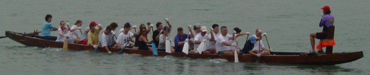 Tijdens de jaarlijkse Dragonboat Race in Dicovery Bay heeft voor het eerst ook een volledig Nederlands team meegedaan. Drie maanden van te voren zijn we daarvoor begonnen te trainen, door de week met rennen, zwemmen en gewichten, tijdens het weekend met de boot. Het is daardoor een leuk team geworden, met ook veel gezamenlijke sociale activiteiten. Uiteindelijk zijn we op de derde plaats beland (van 25 deelnemende teams), en daar waren we erg tevreden mee.