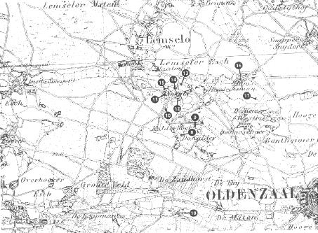 Al het lichtgrijs getinte gebied is veldgrond, voorheen gemeenschappelijk bezit van de erven in de marke. In 1850 is deze grond verdeeld, maar er is nog nauwelijks iets in cultuur gebracht. Het erve Kalter ligt op een veilige afstand van 2 km van de Oldenzaalse stadsmuur, het Wolbert ligt op 2,5 km. De Lemselose beek loopt nog tussen Wolbert en Stegeman door, later wordt ze verlegd boven langs Stegeman en een zijtak gaat Wolbertbeek heten.