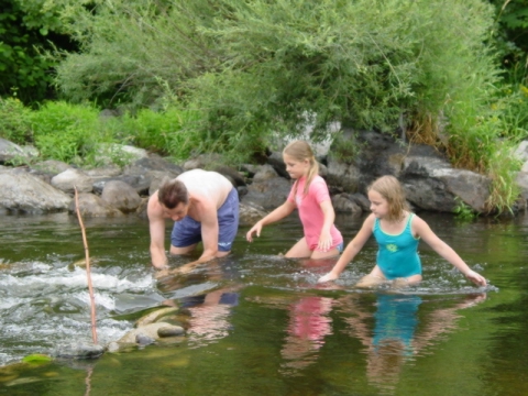 Bouwen van een dam in de rivier die direct naast de camping ligt