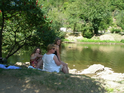 Aan de rivier, want bij die hoge temperaturen (het is de hele week meer dan 35 graden) zoeken we verkoeling.