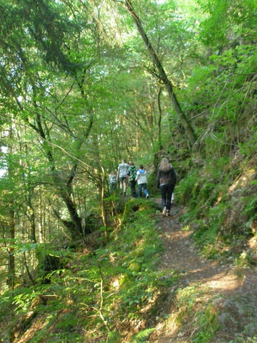 Steeds hoger op de steile helling langs de rivier.