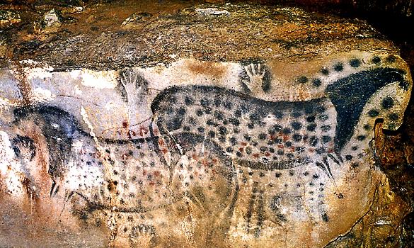 Een van de fraaie tekeningen in de grotten van Pech Merle, in de buurt van Cahors.