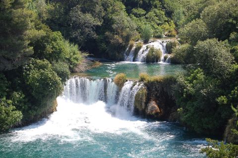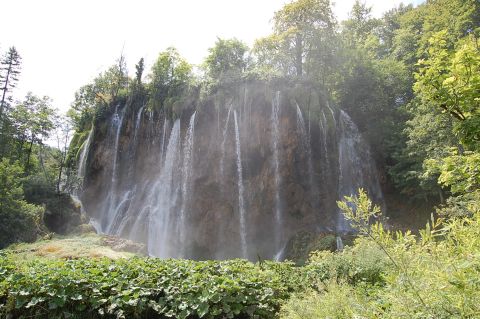 De watervallen van Nationaal Park Plitvice Meren (in Kroatië) zijn zeer talrijk en verplaatsen zich regelmatig vanwege de kalkafzetting. Tussen verschillende mooi blauwe meren zoekt het water zijn weg naar beneden. De wandelpaden in dit park zijn vaak fraaie houten bruggen boven het water. Helaas was het midden in de zomervakantie wel heel erg druk daar.