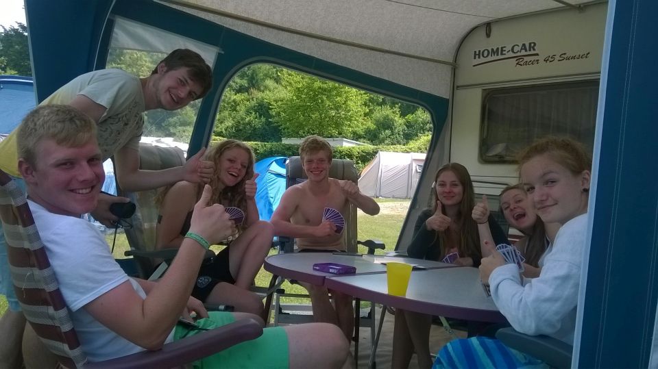 De jeugd voor de caravan.