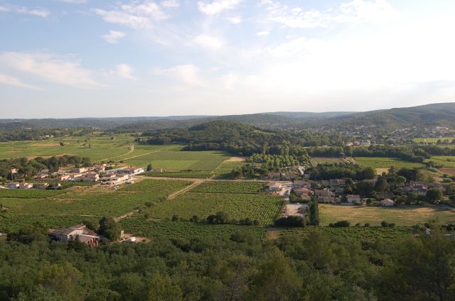 Uitzicht vanuit Cornillon over de camping en omgeving van Goudargues.