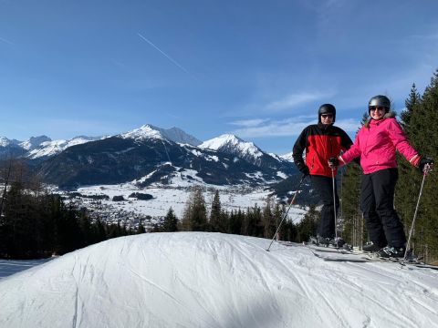 Wij gewoon de hele week met z'n vieren bij Irmi Schretter. Irene, Luc, Roos Sam en Abel aan de Marktplatz. Anke in Hotel Wilhemshof. Het weer is afwisselend, soms mooi zonnig, soms sneeuw. Heel fijn om te skiën dus!
