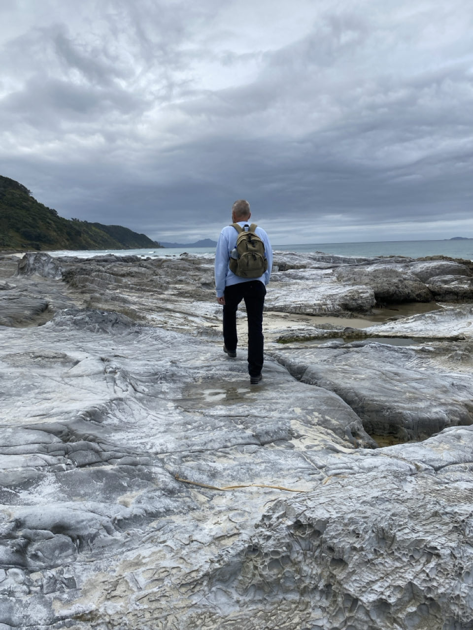 In de middag werd het droog, reden we naar Mangawhai en maakten een wandeltocht langs het strand en bekeken de surfers.