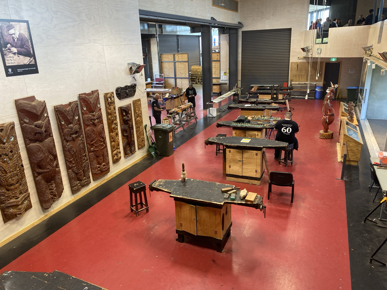 Ook vandaag stappen we in de auto. We rijden door een soort Teletubbie-landschap. Heuvels begroeid met gras, soms met grazende koeien, soms met schapen. In Roturoa zou een parkje zijn met modderbaden en warm water meertjes. Maar dat blijkt niet veel te zijn. Er is wel een Farmers Market maar die bestaat voornamelijk uit auto's en stalletjes van waaruit eten wordt verkocht. Na onze Thaise lunch rijden we snel door naar het Te Puia park met een Arts and Crafts centrum in een geothermaal gebied. Dit centrum is eigenlijk een school waar traditionele houtbewerking en weeftechnieken van de Maori worden onderwezen. Die dreigden te verdwijnen. Verder wordt er geleerd om sieraden te maken van klei, walvisbot en jade.