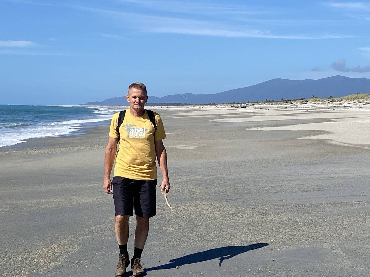 Op weg naar het motel weten we de omgeving in foto's vast te leggen. Dat bijna nieuwe motel ligt overigens in Haast Beach, wat bestaat uit alleen het motel. Het is 300 meter naar het strand. Peter tekent heel romantisch een hart in het zand met een J en een P. Toch een lichte teleurstelling als blijkt dat het hart er alleen maar ligt om aan te geven dat op die plek het paadje ligt naar het motel. Dat zie je namelijk niet vanaf het strand. Fijn, zo'n praktische echtgenoot, daar kom je mee thuis.