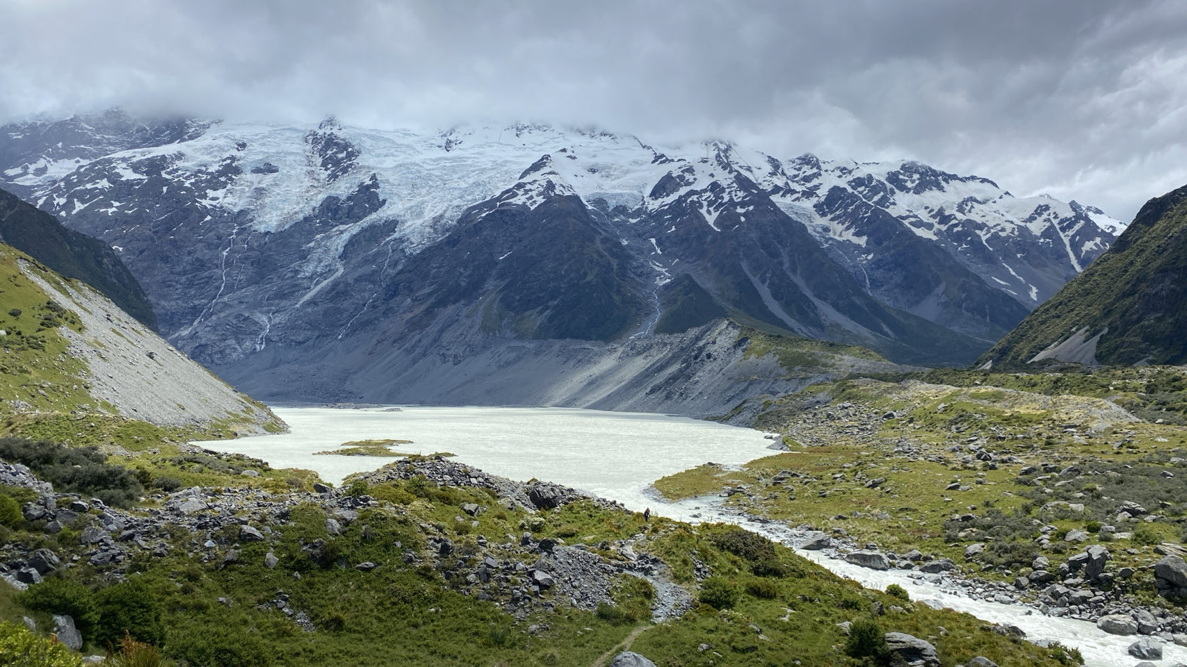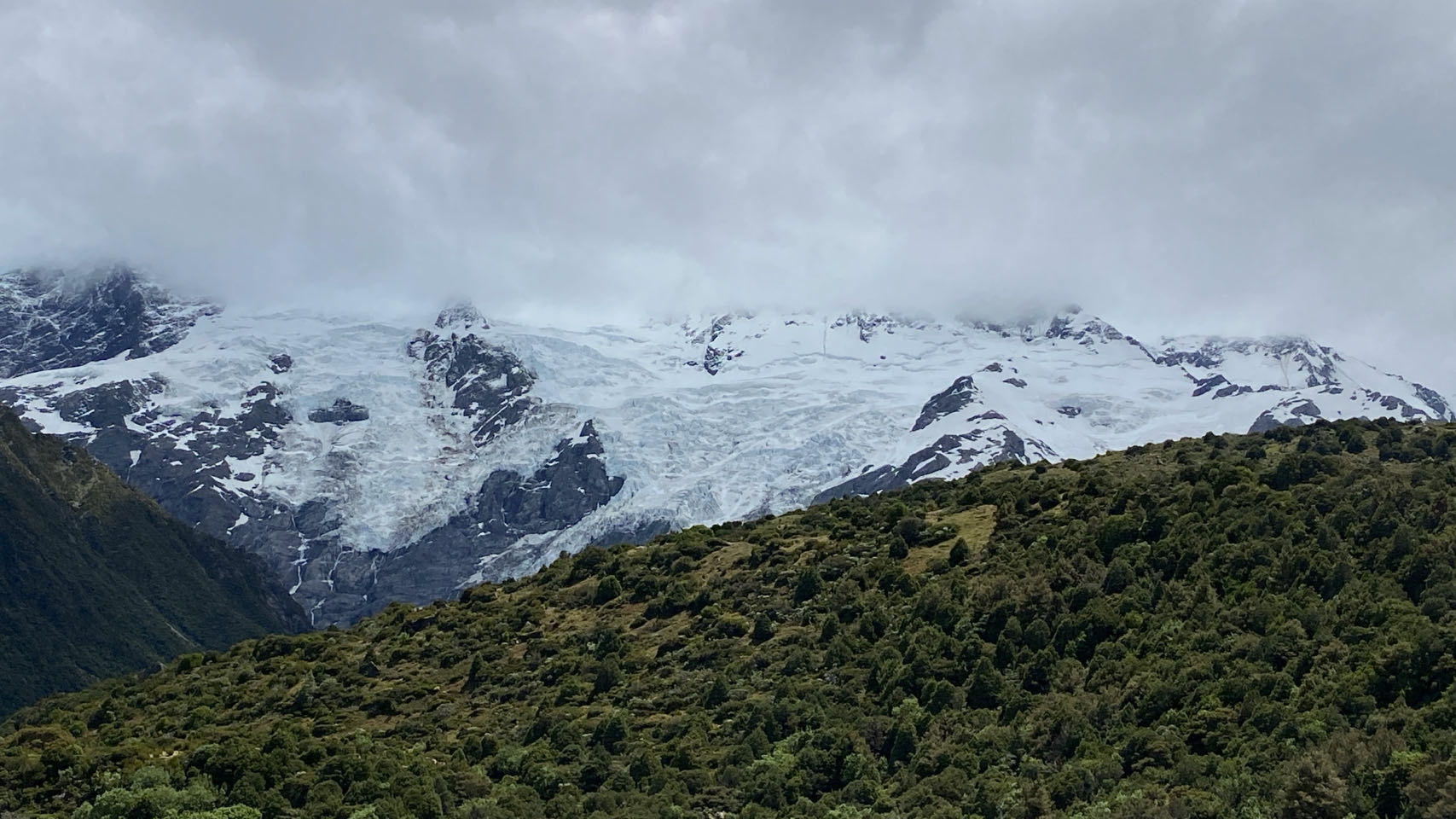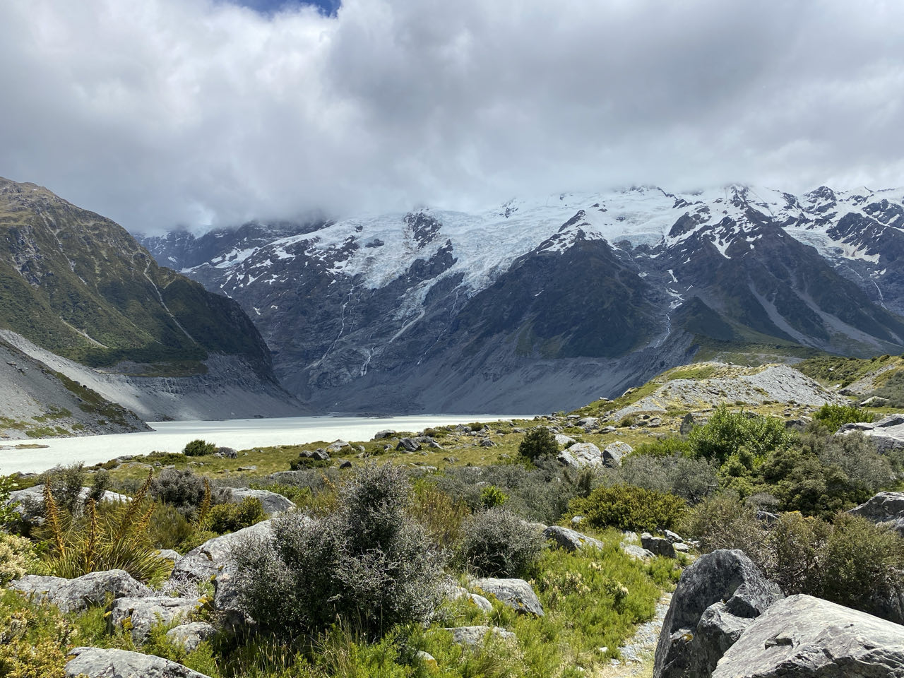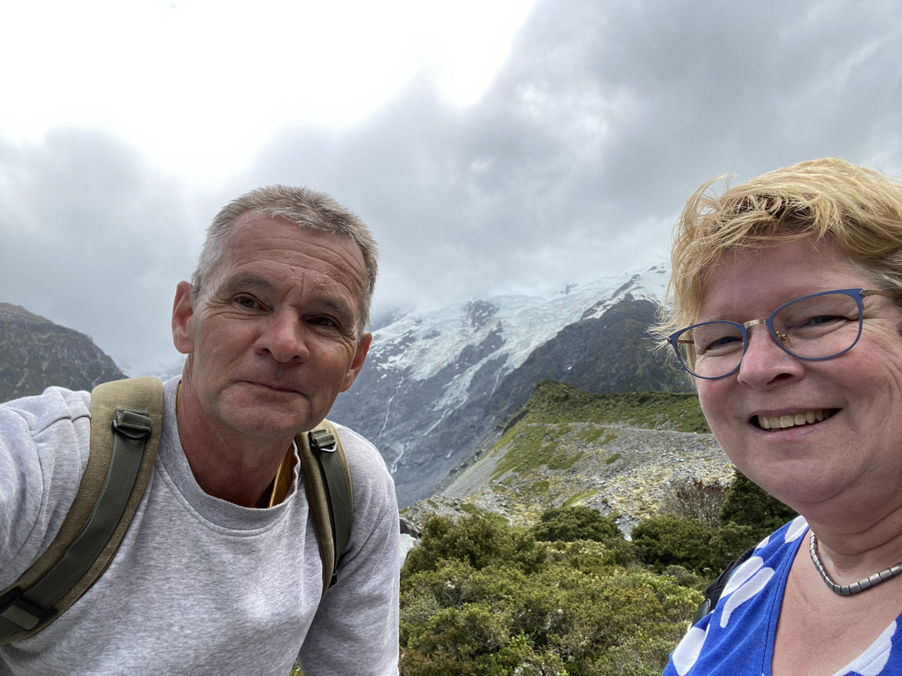 Daarna rijden we verder naar een berg met wel nog allerlei gletsjers. Op de achtergrond ligt Mount Cook, de hoogste berg van Nieuw-Zeeland. De top gehuld in de mist. Hier maken we ook een lange wandeling, onder andere over een schommelbrug. Terug komen we opnieuw langs Lake Pukaki, waar we mooie foto’s kunnen maken.