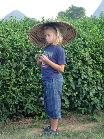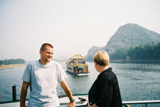 Met een boot op de rivier zijn we van Guilin naar Yangshuo gevaren. Dit kleine stadje ligt midden tussen de steile heuvels, en is een gewilde bestemming voor internationale toeristen. Op de markt hebben we daar dan ook veel souvenirs en andere zaken gekocht.