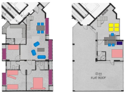 De eerste twee jaar in Hong Kong woonden we in Marine View. Onze flat in Discovery Bay besloeg de bovenste twee verdiepingen, met ingang op de negentiende verdieping. Daar was onze woonkamer, keuken en slaapkamers met toilet en douche van Peter & Judith, Jolijn & Meike en Virginia. Op de bovenverdieping was de speel & studeerkamer, de slaapkamer met toilet en douche voor gasten en het grote terras.
