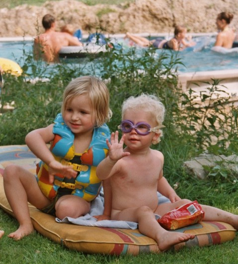 Sanne en Neeltje bij het zwembad