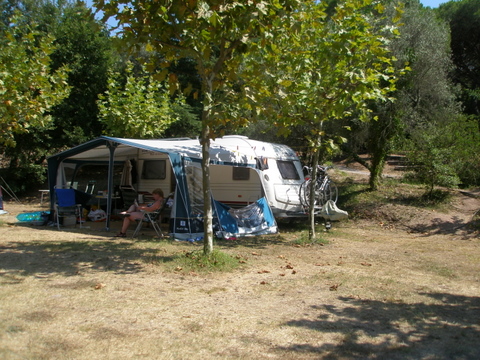 Onze kampeerplaats in Frejus, erg ruim, op de rustige camping Le Malbousquet.