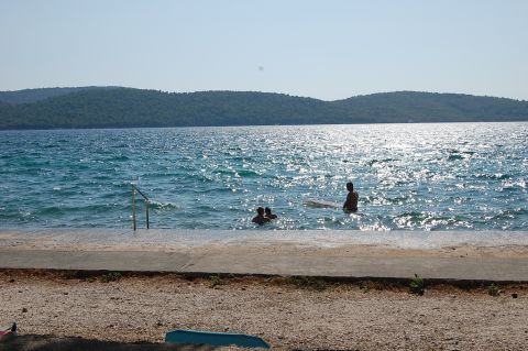 Het was erg warm in Kroatië, elke dag ver boven de dertig graden, dus zwemmen in zee bracht welkome verkoeling. Mooie zandstranden zijn er amper, maar naast de haven en voor de camping in Zablace (bij Sibenik) vonden we een lekker rustige plek.