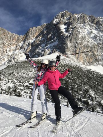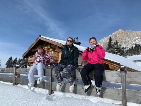 Wij gewoon de hele week met z'n vieren bij Irmi Schretter. Irene, Luc, Roos Sam en Abel aan de Marktplatz. Anke in Hotel Wilhemshof. Het weer is afwisselend, soms mooi zonnig, soms sneeuw. Heel fijn om te skiën dus!