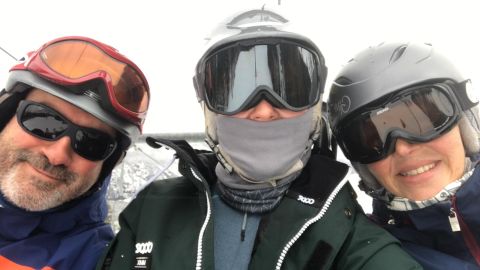 Luc, Roos en Irene in een andere stoeltjeslift.