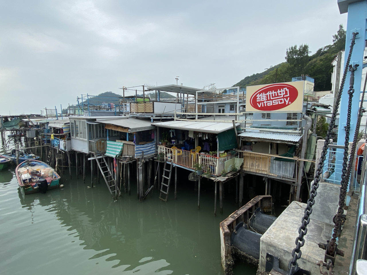 Daarna naar vissersdorp Tai O waar de families hun huizen op palen hebben gebouwd. Dan kunnen ze ook per boot bij hun huizen komen. Het ziet er wat armoedig uit, suggereer dat ze in 'deze heritage village' daar overdag zitten en 's avonds naar hun echte huizen gaan, maar het lijkt er toch echt op dat ze daar wonen. Op veel plekken bieden de vissers gedroogde vis aan. Vier jaar lang hebben we toeristen meegenomen naar Tai O, blijkt nu dat we ze maar een derde van het dorpje hebben laten zien. Tai O is stukken groter dan gedacht.