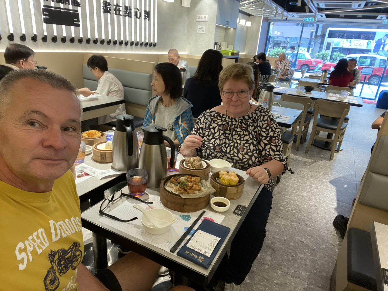 Met de Star Ferry, de boot die al sinds 1888 vaart tussen Hong Kong Island en Kowloon en je voor een paar dubbeltjes overzet over Victoria harbour, varen we naar Kowloon. Daar lopen we door de straten en snuiven de sfeer op. We bezoeken het Heritage Museum, lunchen bij een goed Dim Sum restaurant en lopen verder naar de Lady's Market. Daar is weinig veranderd. We lopen terug richting het geschiedenismuseum. Helaas is deze niet open. Het geschiedenismuseum wordt aangepast aan de nieuwe tijd. Wel is er een tijdelijke tentoonstelling van de 'glorieuze reis en schitterende prestaties van de Volksrepubliek China in zijn 75-jarig bestaan', De tentoonstelling geeft een overzicht van 'de opmerkelijke vooruitgang en prestaties in vijf deelgebieden'. Helaas waren we al laat in het museum en was er alleen tijd om de fototentoonstelling te zien met foto's uit China van ca. 1875 tot ca. 1920.