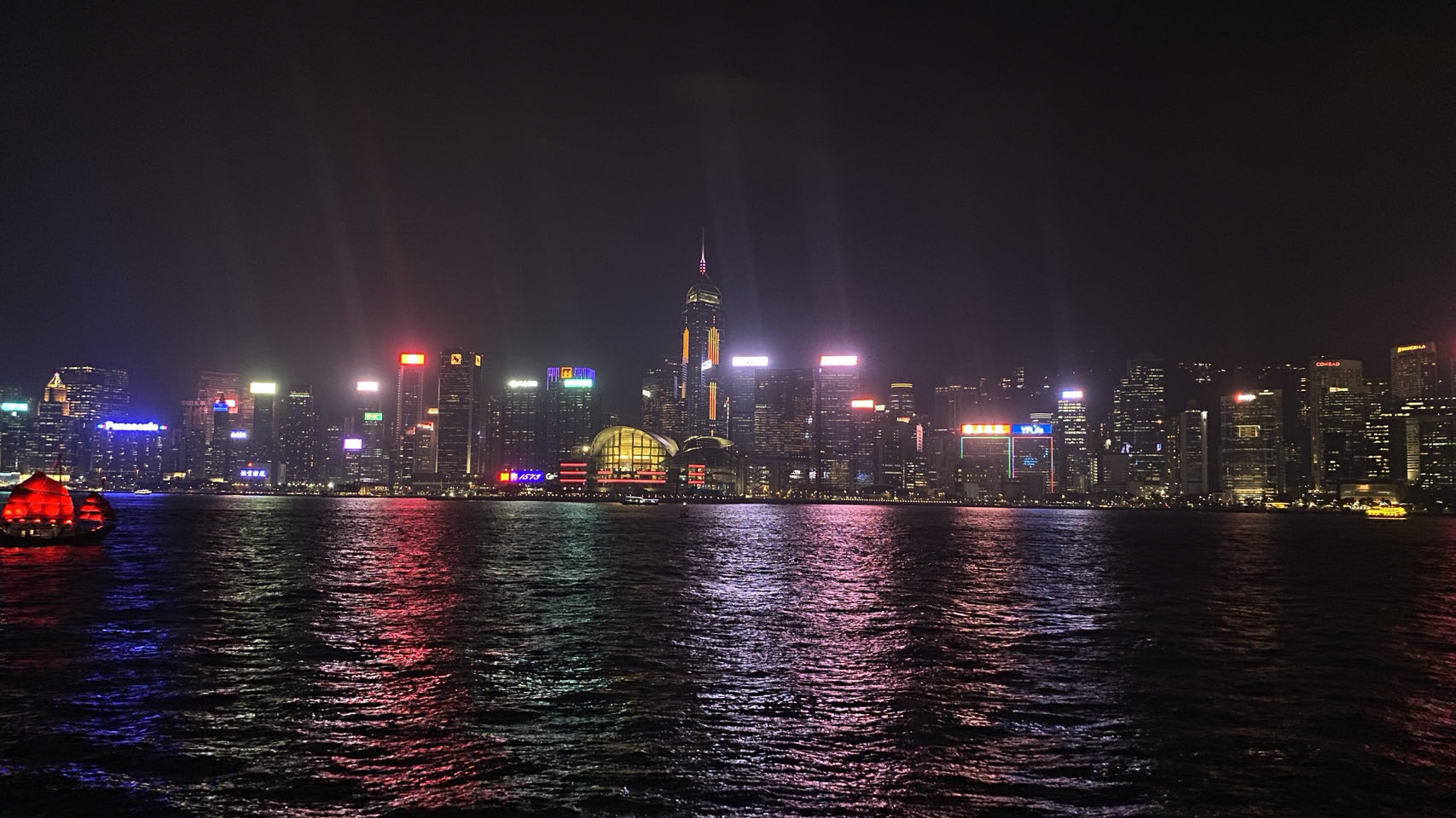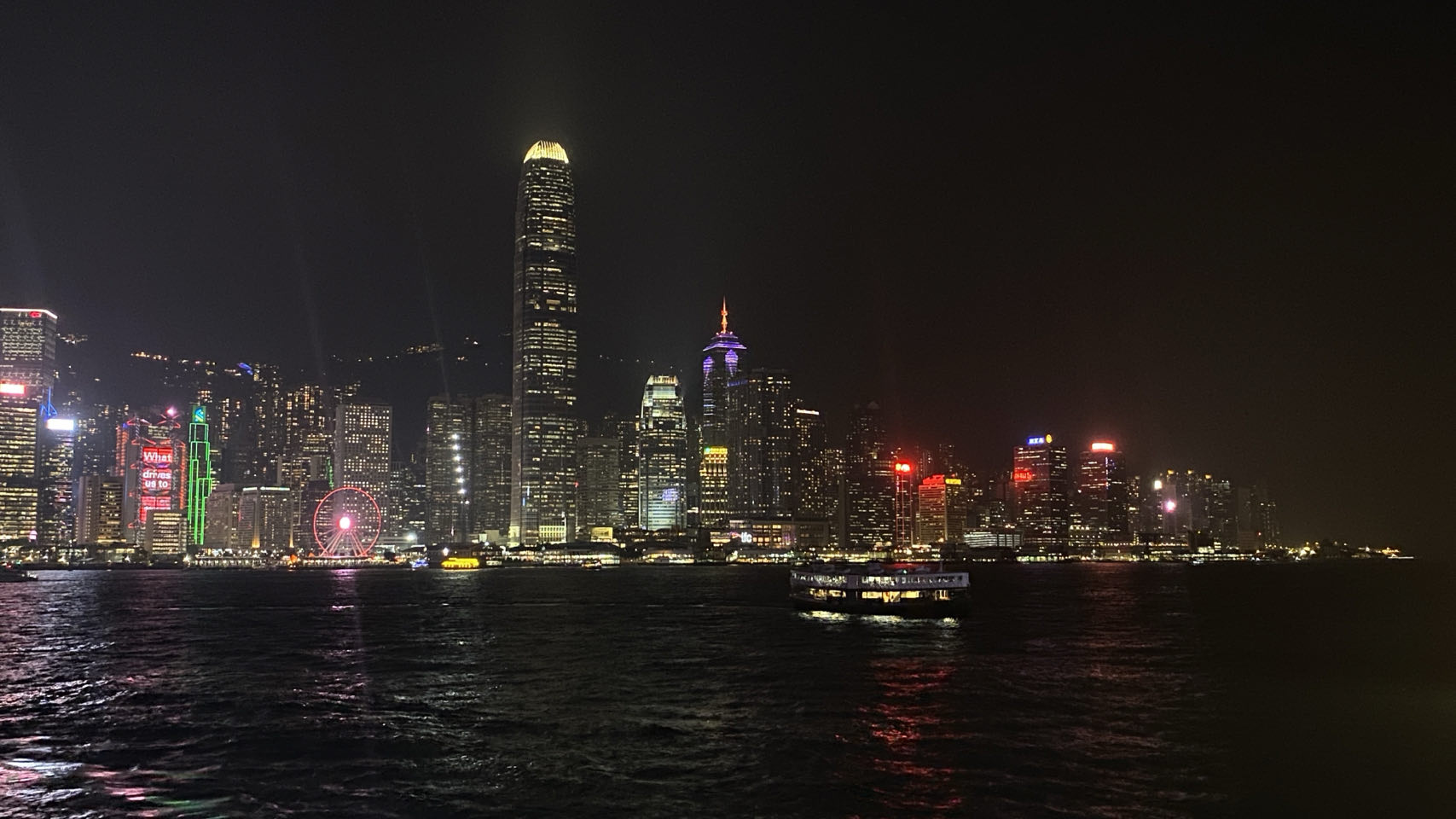 Geïnspireerd door alle foto's experimenteren we op onze iPhones met sluiter- en belichtingstijden om Hong Kong by night te fotograferen.
