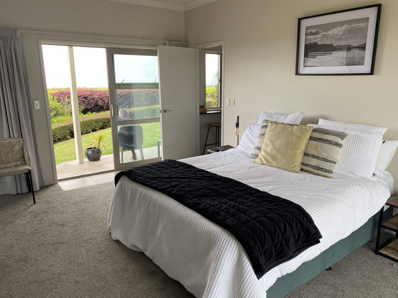 Zaterdag tegen de avond komen we in Ruakaka aan bij ons huisje. De twee grote honden van de eigenaar komen al aangerend om ons te begroeten. Het huisje is erg mooi, ruim, met veel licht, smaakvol ingericht en met schitterend uitzicht aan twee kanten. Hier zullen we vier nachten verblijven.