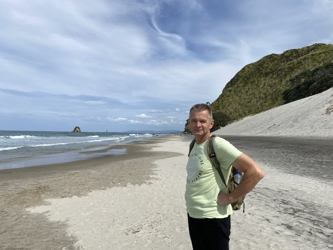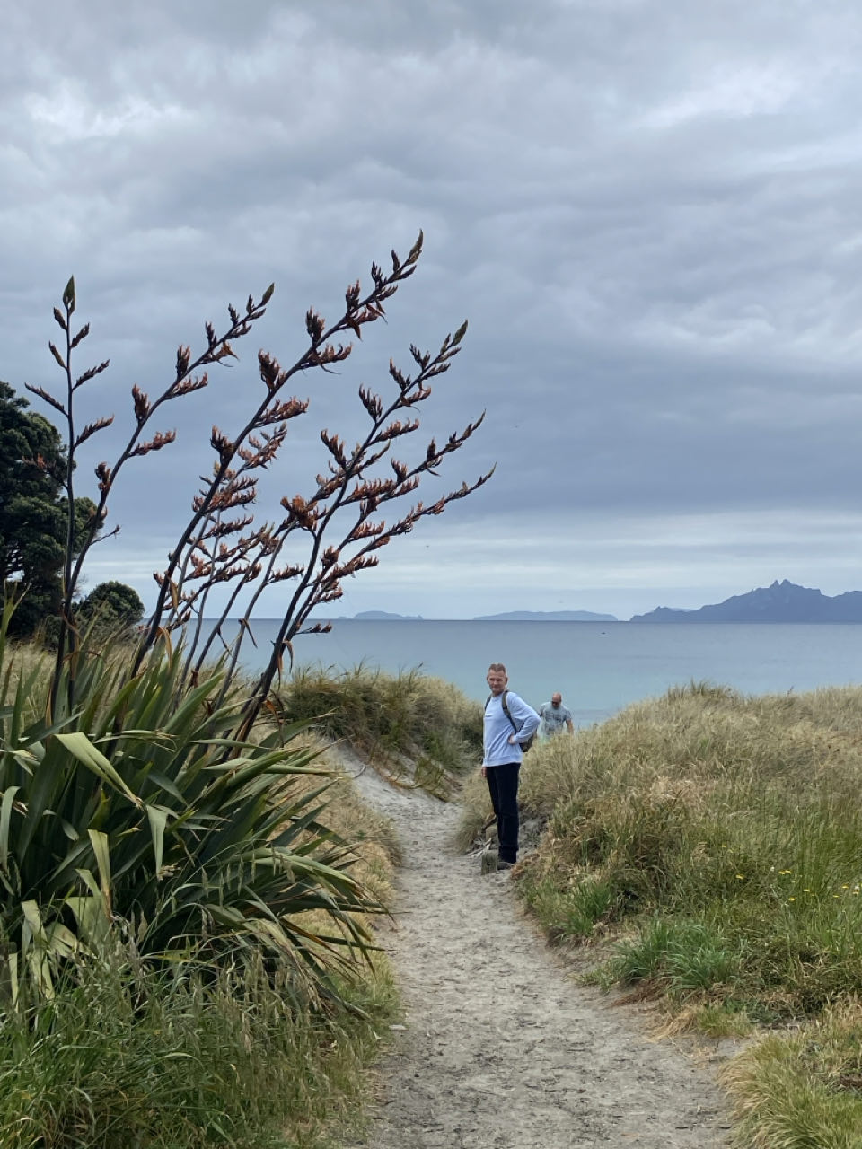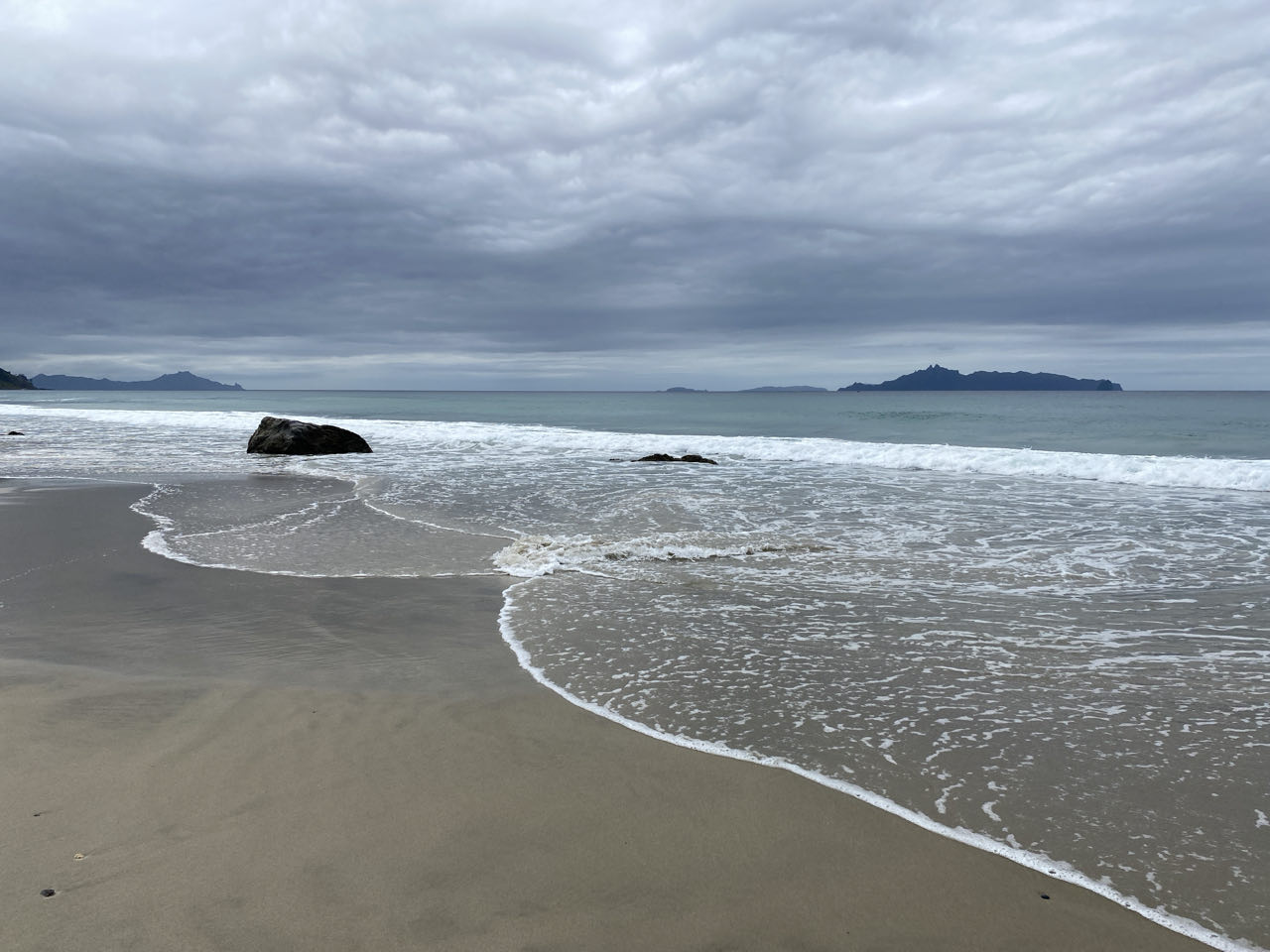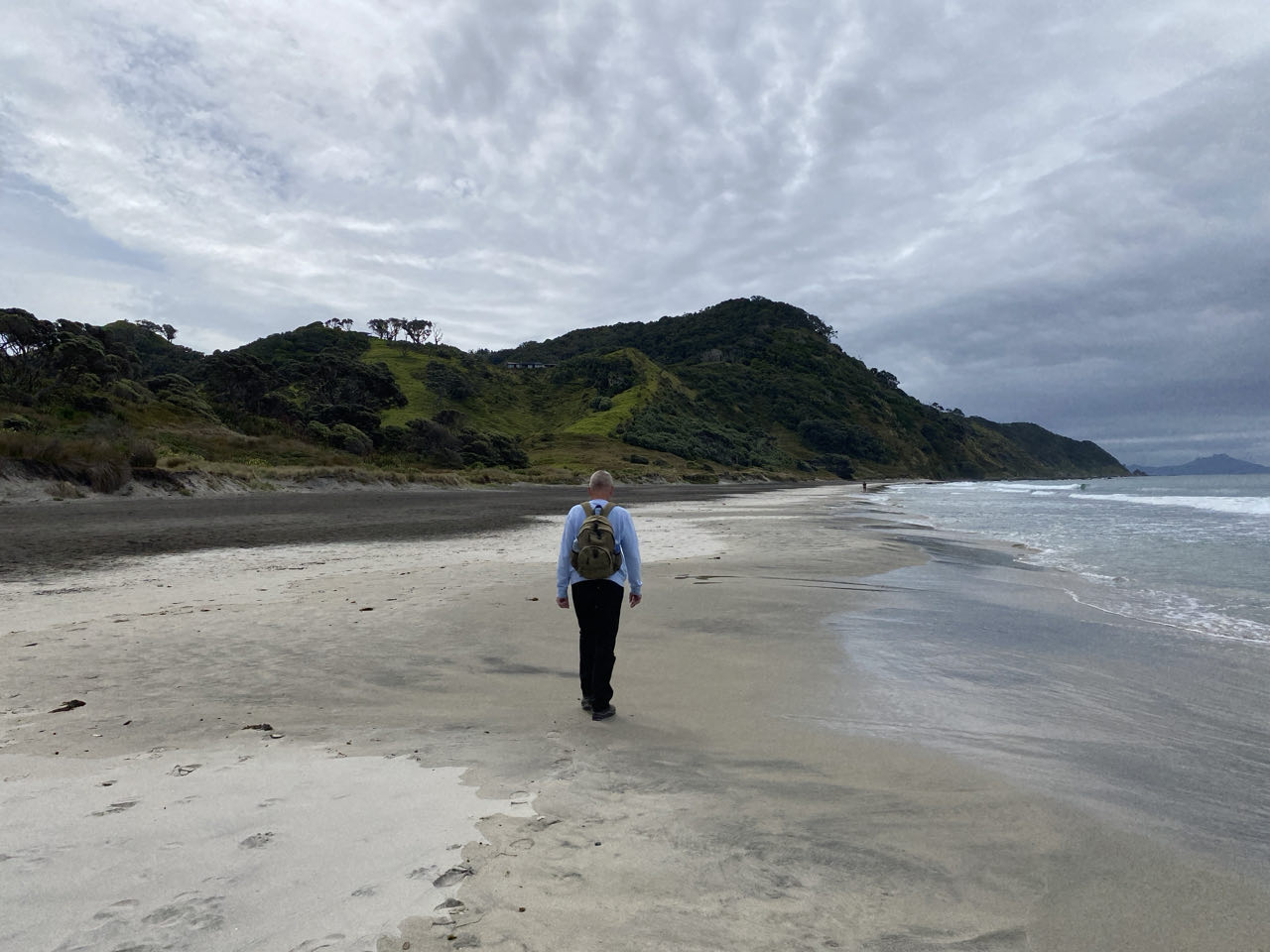 In de middag werd het droog, reden we naar Mangawhai en maakten een wandeltocht langs het strand en bekeken de surfers.