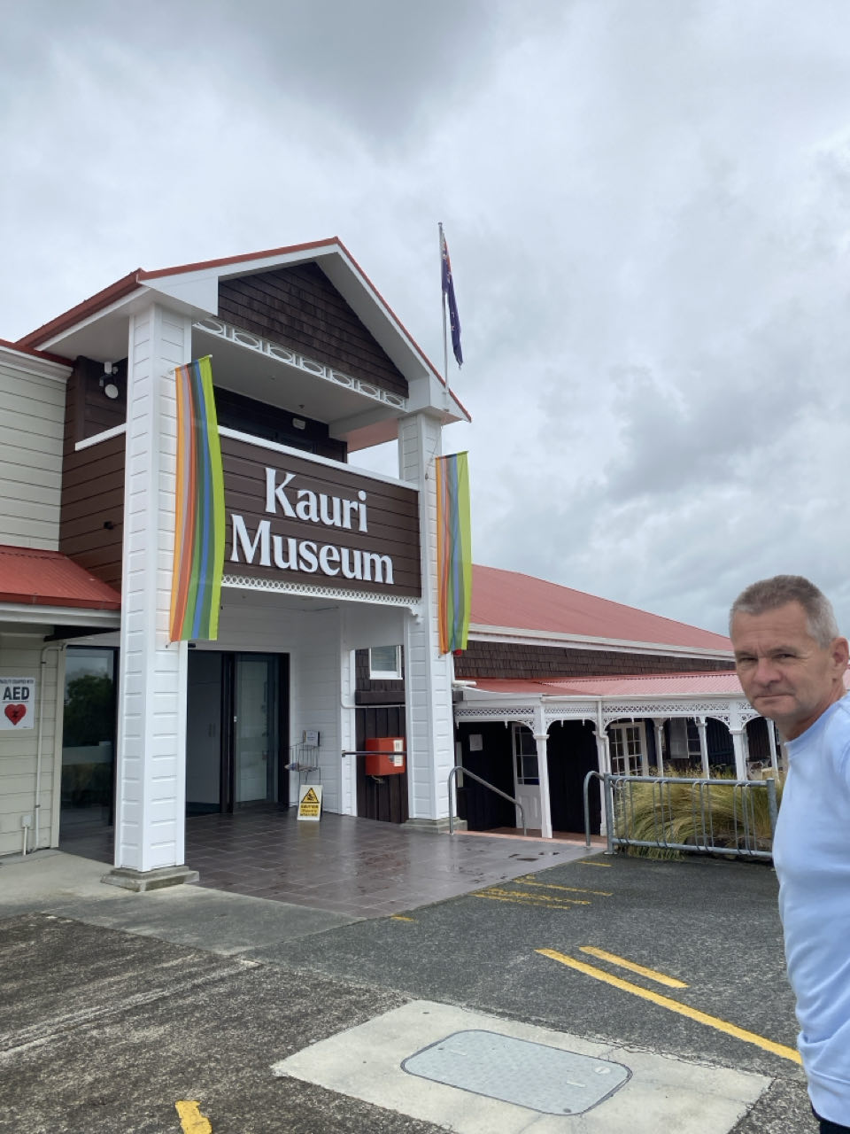 Weer een mooie zonsopgang vandaag, alhoewel het in de ochtend zal gaan regenen. Dan is een museum een prima plek. We rijden naar Matakohe naar het Kauri-museum. Het museum behandelde oorspronkelijk het leven van de Engelsen die naar Nieuw-Zeeland immigreerden. Maar hun eerste werk was het kappen van de Kauri-bomen vanwege ontginning. De grootste bomen ter wereld zijn de Sequoia's (in Amerika), daarna komen de Kauri (alleen in Nieuw Zeeland). Daar is dan ook veel informatie over te vinden en het museum heet tegenwoordig Kauri-museum. Met heel veel soorten zagen, talrijke meubels die van het hout gemaakt zijn en veel foto’s van omstreeks 1900 waarbij ze bezig zijn met zagen en vervoeren van het hout met ossen.