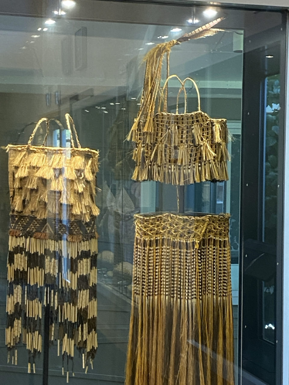 Vezels voor het weven komen van groene struiken, zie een van de foto's, waarvan het groen wordt verwijderd met bijvoorbeeld schelpen waarna de vezels overblijven.
