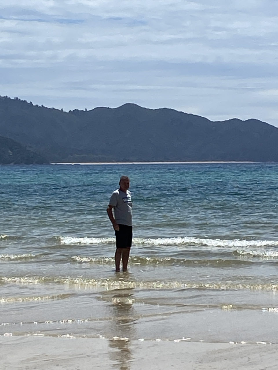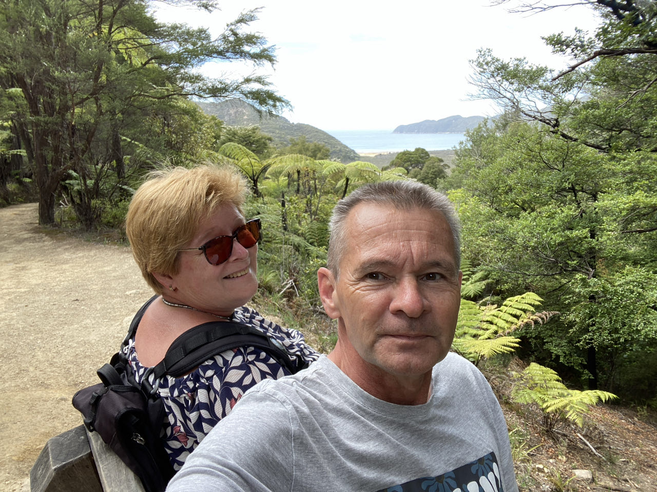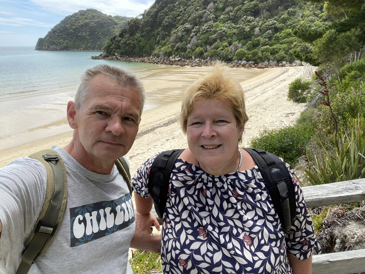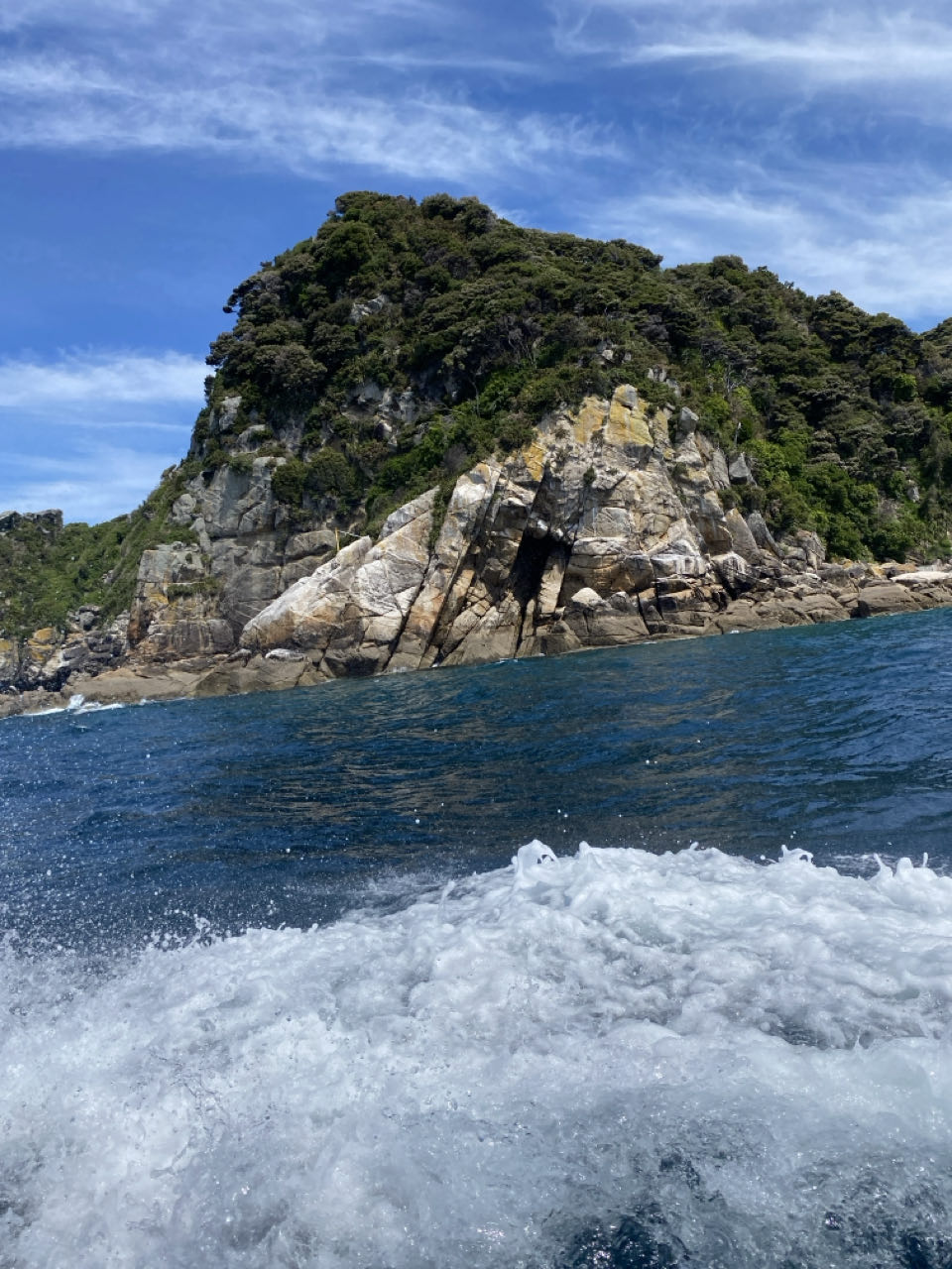 Om kwart voor negen stonden we klaar voor de watertaxi om bij Onetahuti afgezet te worden. Ons huisje ligt bijna naast het bedrijf van de watertaxi’s, erg comfortabel. Bij de wachtenden ontwaren we ook Suzan en Freek. Helaas stapten zij bij een andere bootje in en hebben we ze de rest van de dag niet meer gezien. Wat we wel zagen: opnieuw Split Apple rock en iets later dolfijnen. Er zwommen er wel zo’n vijftig rond de boot. Sommige deden hun kunstje en sprongen op uit het water en schattig was het babydolfijntje dat strak naast zijn moeder bleef zwemmen. Helaas heb ik dat niet vastgelegd op camera. Daarna gingen we aan de wandel in de mooie omgeving om al snel uit te komen bij Awaroa Lodge voor de lunch. Vervolgens hebben we langs het prachtige strand van Awaroa gelopen totdat de watertaxi ons weer op kwam halen. Om in de boot te komen moesten schoenen en sokken uit, de opgetrokken broek werd toch weer nat en vervolgens een dik uur varen terug naar Mārahau. Geen straf, want wat is het er prachtig.