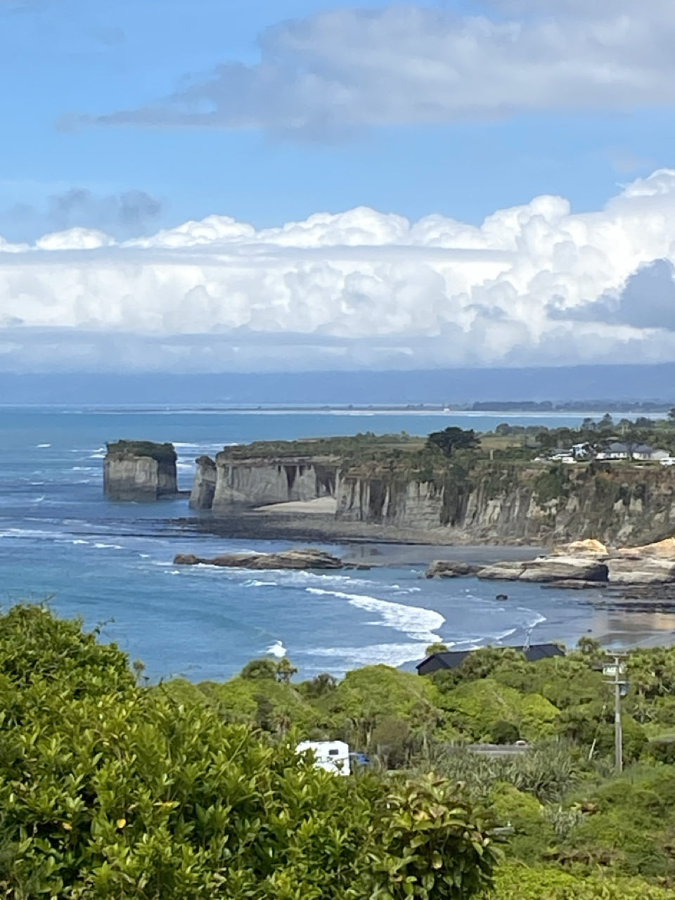 Op weg naar de gletsjers aan de westkust stoppen we halverwege voor een overnachting bij Cape Foulwind. James Cook gaf het die naam omdat het zo stormde toen hij er langs voer.