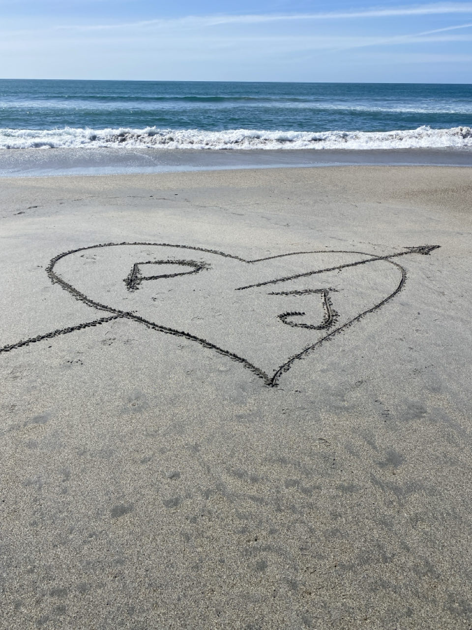 ‘s Avonds gaan we terug om de zonsondergang te zien, maar die verdwijnt in de laaghangende bewolking. En het hart? Dat wordt uitgewist door de golven. Maar verder hebben we het met ons tweeen prima naar de zin op deze reis.