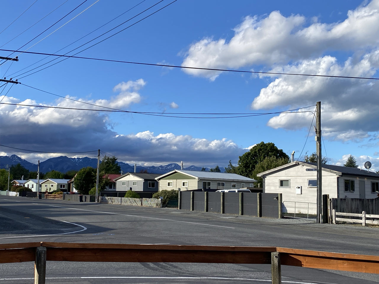 Donderdagavond lopen we nog even langs de winkels om het dorpje te verkennen. In 1968 kwamen hier de eerste bewoners. Nu wonen er zo’n 1200. Dat verdriedubbelt in zomer en winter want Twizel ligt dicht bij de bergen. Er zijn dus veel vakantiegangers. De foto met de huizen geeft weer hoe veel Nieuw-Zeelanders wonen. Bijna iedereen woont vrijstaand, ook in de steden. De meeste huizen zijn van hout met een schuin dak voor opbergzolder, want de slaapkamers liggen meestal ook beneden. Al in de eerste week hoorden we kerstmuziek in de winkels, dus we dachten dat wordt nog wat richting Kerst. Maar geen enkel huis wordt versierd met lichtjes en we hebben bijna geen huizen met een kerstboom binnen of buiten gezien. De meeste dorpen hebben een grote kerstboom met ballen op een centrale plek en dat is het wel.